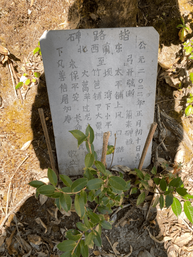 沿着X192县道翻越高黎贡山,曲里拐弯的林中路,有吃人的气氛,植物穿插生长,密不透风。接近道路最高处的时候,转弯的路口有一个指路碑,立碑是一种功德,也可为所立之人的孩子挡煞。指路的行为在今天几乎消失,像我们这样一些常在主路之外行走的人还能有些体会,这些遗痕是超出学术之外的旷野,我们可以用个人体验的方式随心所欲地表达有关的思考。