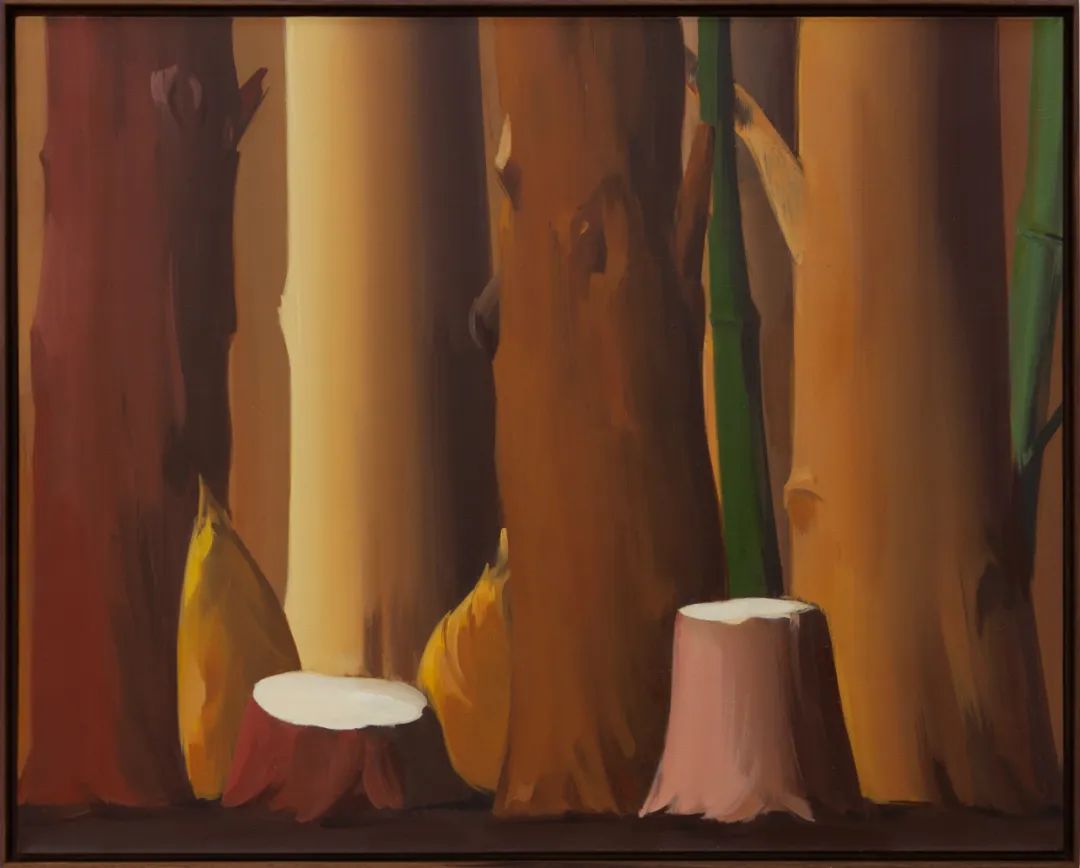 树的形象,犹如生长的植物,有如人的躯体,与之相应的场景,在画布表面不断展开,以其为母题,不断寻找着树的形体和形式,枝干的分叉与聚合,根系与土壤的交错,伴随着色调与色块的节奏,轮廓与笔触的排布,控制与偶发的痕迹,这些具体实践的可能,最终演化成独立的绘画主题和精神性的视觉对象。