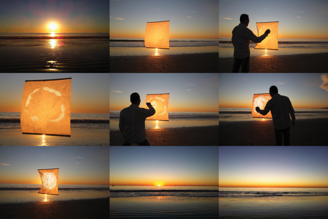 自然是一个整体,但是始终在演化变化中。所以我就用了水,比方说我做《拓太阳》那件作品,用水去拓火,水随着时间消失,然后第二天在我们人的记忆中,太阳还会升起,如果我们人的愿望能参与,还能在自然中留下那么一点微小的痕迹。所以在这些拓印的作品中,我还是想产生一个最终的结果,这个结果并不是完整的某一个局部,而是整个过程。
