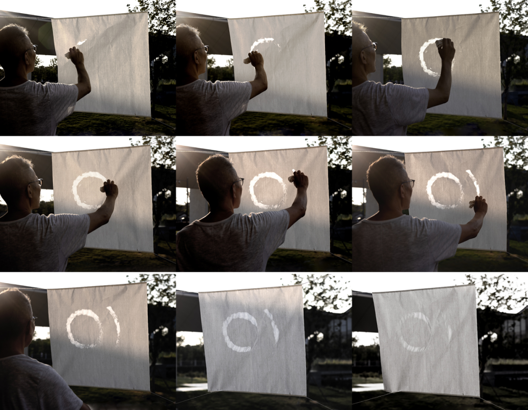 但是艺术在发展40年以后,我今年又想回顾我自己,我想把当年这个符号用一个“拓”的方式表现,就像《拓太阳》的方式去拓印。当然就像太阳下山、水迹消失,我这个符号也一样会消失,也会在一个过程中消失。但如果我愿意,我还能回去,还能再去重复,能再回去对话一次。其实我觉得人在生活中也好,在创作中,成长中,他始终在一个循环中。