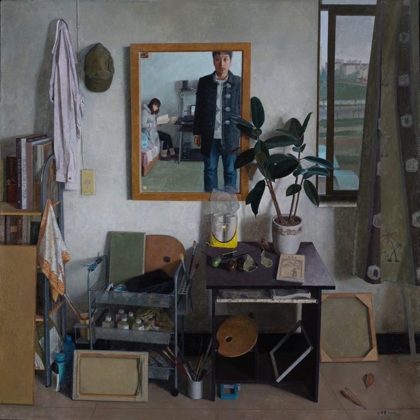 仝紫云《室内的风景和窗外的风景》200×200cm布面油画2010年7-10月创作