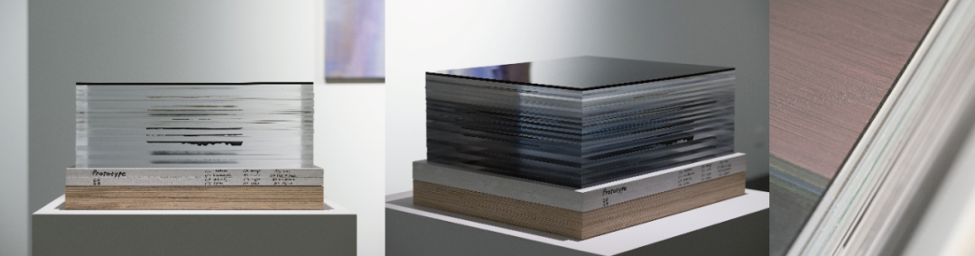 作品的材料主要是是亚克力板,每一层板上都以莱因哈特的绘画方式画上一笔,同时也对应半导体芯片里层层叠加的电路概念。多层板叠合象征着绘画笔触的叠加,再整体放置于木板之上。由于“亚克力”的英文翻译与“丙烯颜料”相同,所以其实最终这两者的并置是“木板上丙烯 Acrylic on wood panel”——它回到了绘画。当时是想通过这样的方式重新找到思考绘画的点。
