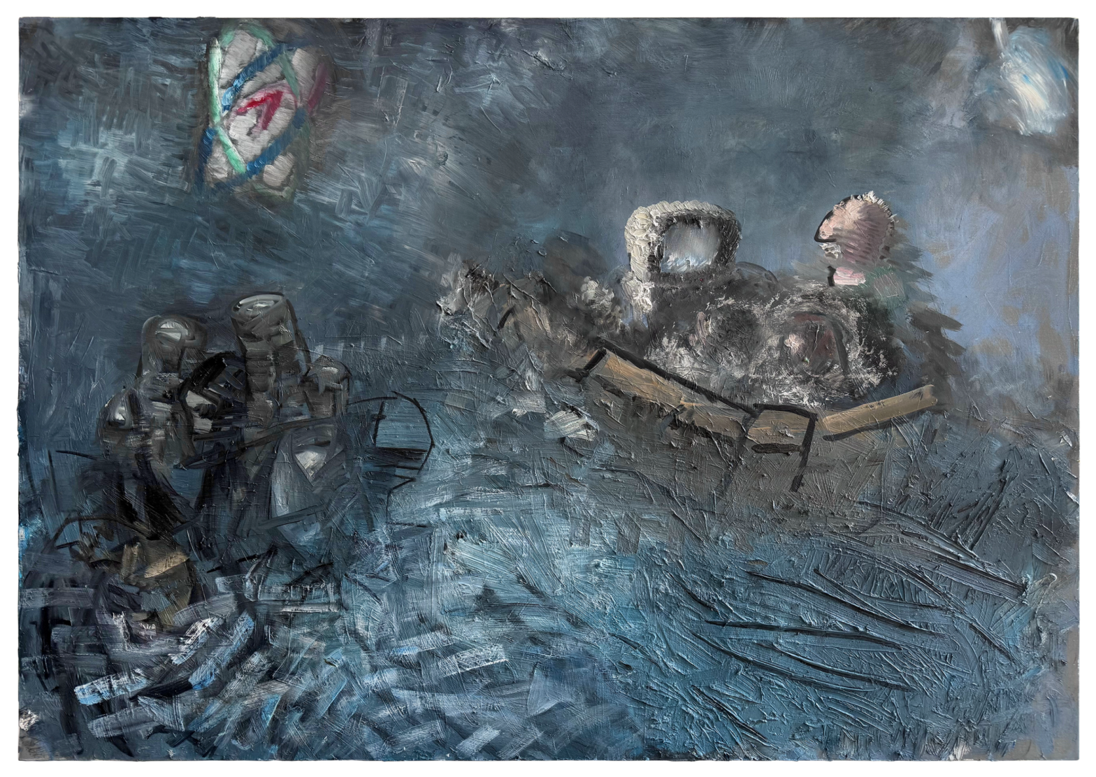 在具体的创作过程中,邢万里借助油画媒介特有的流动性与不可控性,使画面中的形象在宁静与喧嚣、具象与抽象之间徘徊;通过对记忆碎片化与偶发性的捕捉,将那些漂浮于意识的图像凝固于画布之上。此时,记忆已不再是对过去的简单重现,而是与当下的感知交织、不断重构,生成一种活跃的、参与当前经验的状态。