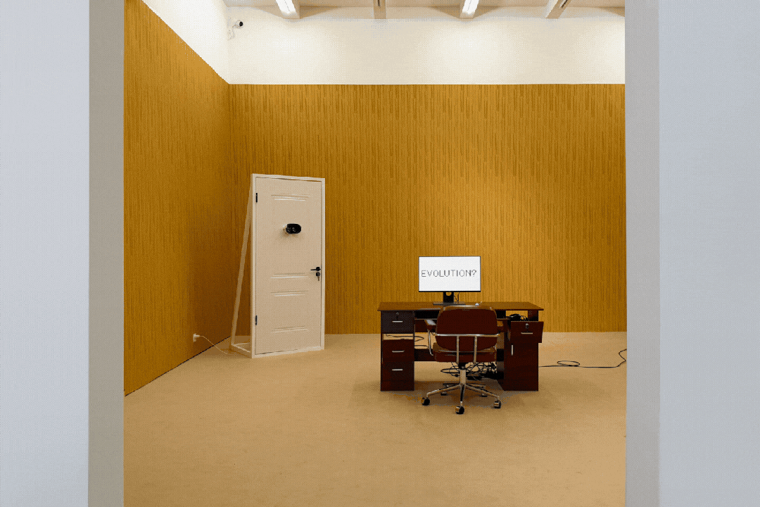 刘广隶大概注意到了,一个经由互联网自主行动的AI可能也是某种意义上的后室?后室:一个Youtube上虚构的都市传说,会自我繁殖、从现实中随机掠取事物的阈限空间,一切都似曾相似又总是错位偏差地把人困在其中。因此,在他设计的后室里,一间泛着黄色光贴有壁纸和地毯的办公室,运行着一个由AI独自运作的监狱游戏(灵感来自斯坦福监狱实验)。在这里,我们唯一可做的只有按下存档键,或者监看AI彼此间的实时状态和对话。