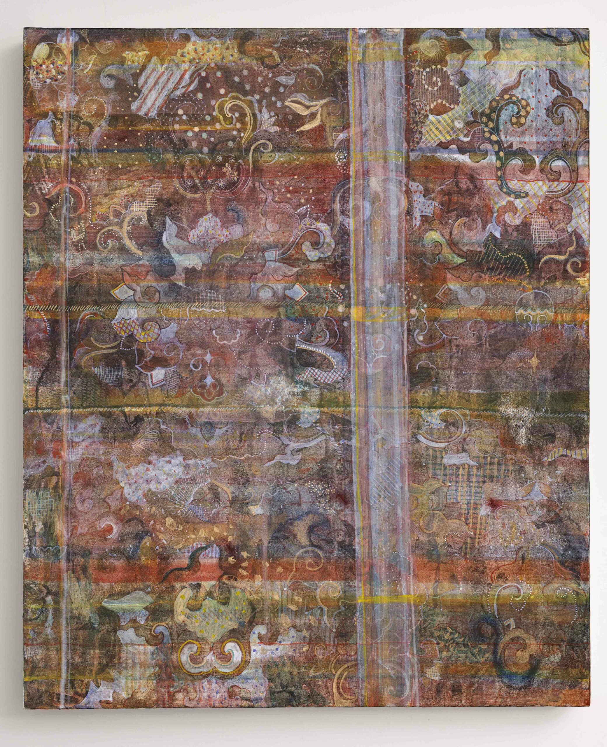 与传统山水画强调“心源”“意造”不同,黄宇兴将笔下山水视作一处处不断被拆解、重组的视觉剧场。为此,他不再执着于山水的“物象”,而直指其“生成逻辑”“节奏机制”与“意识结构”。反映在他的创作之中,地层的流动、光色的折跃,以及林木、建筑等地表景观的破碎重叠,共同构成了某种介于自然变形与精神动能之间的不稳定的图像场域。画面所呈现的,并非空间,而是一种正在生成、演化,并不断消融的时空断面,既像地质演化的图谱,也像日间幻梦的片段。这与当代法国哲学家让-吕克·南希提出的“共临性”理论形成呼应。从“共临”的角度看来,黄宇兴所绘画的山水不再是外在之物,而是与主体共同存在的流动关系结构。它既内在于我们,也不断从我们之外逼近我们,扰动我们。