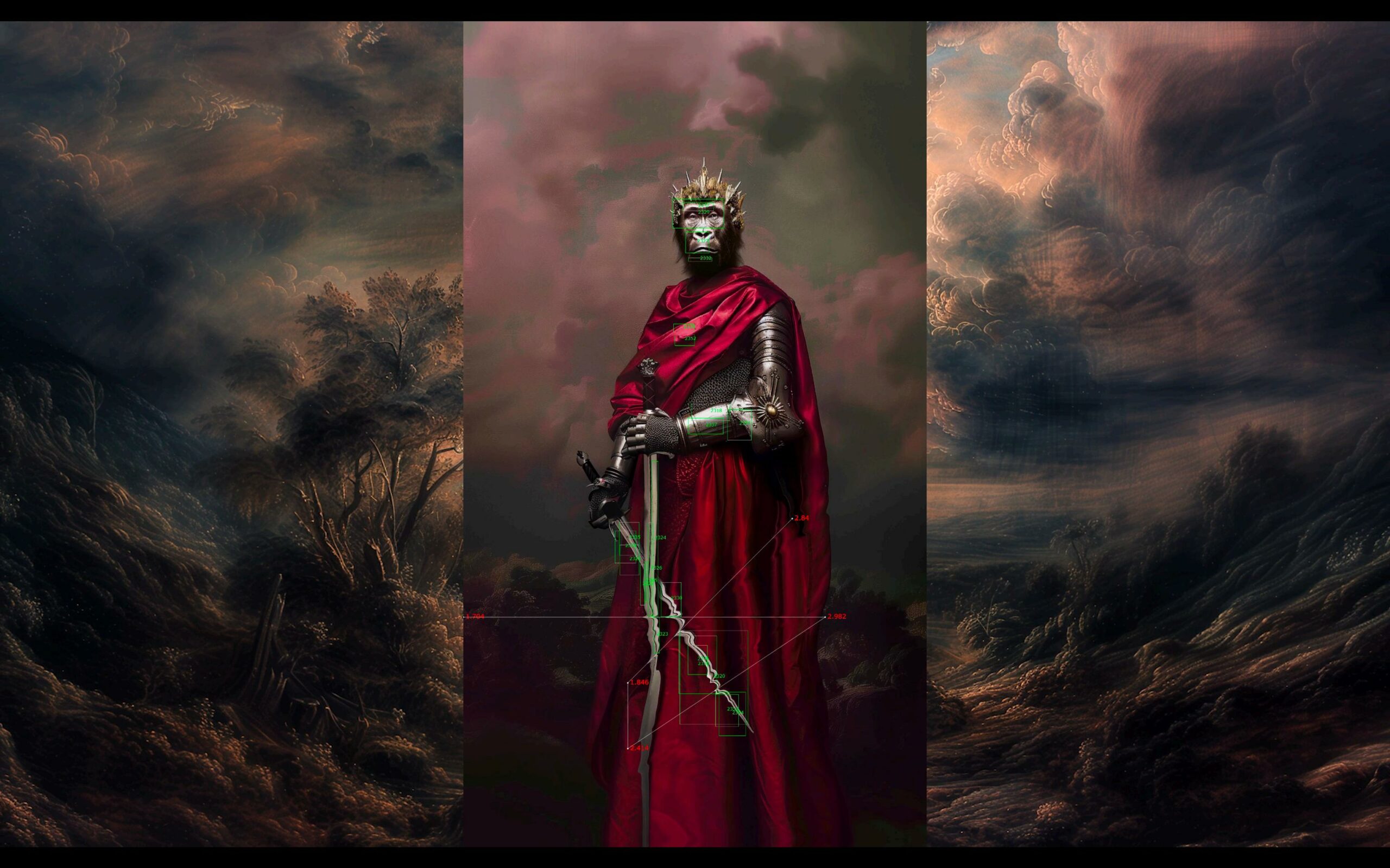 由此,“向外之致”并非肉身的离开,而是意识的漂移。它不是走入山林,而是被山林之影牵引,从现实的表面穿越而下,抵达一个既具体可感又抽象未明的“精神地貌”。在这一图像构成的异质空间中,“看山水”不再是对外在风景的赏析,而是一种对内在存在边界的凝视——它触及的是感知被压抑的边缘,是意识被唤起的潜流。在这里,“看山水”不再意味着欣赏,而是直面自我存在的边界。山水也不再是对象,而是经验,是对文明边界的感知图景,与图像化的冥想。它邀请我们将“观看”转化为一种“在场”的方式,在流动的视觉秩序中重新辨认自我与世界之间被遮蔽的联结。